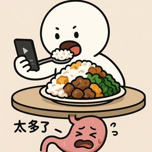 一边刷短视频,一边扒拉碗里的饭,不要太过惬意。不过往往手比嘴快,往嘴里塞得比嚼得快,胃还没来得及传递“饱”的信号,就已经吃超量了。